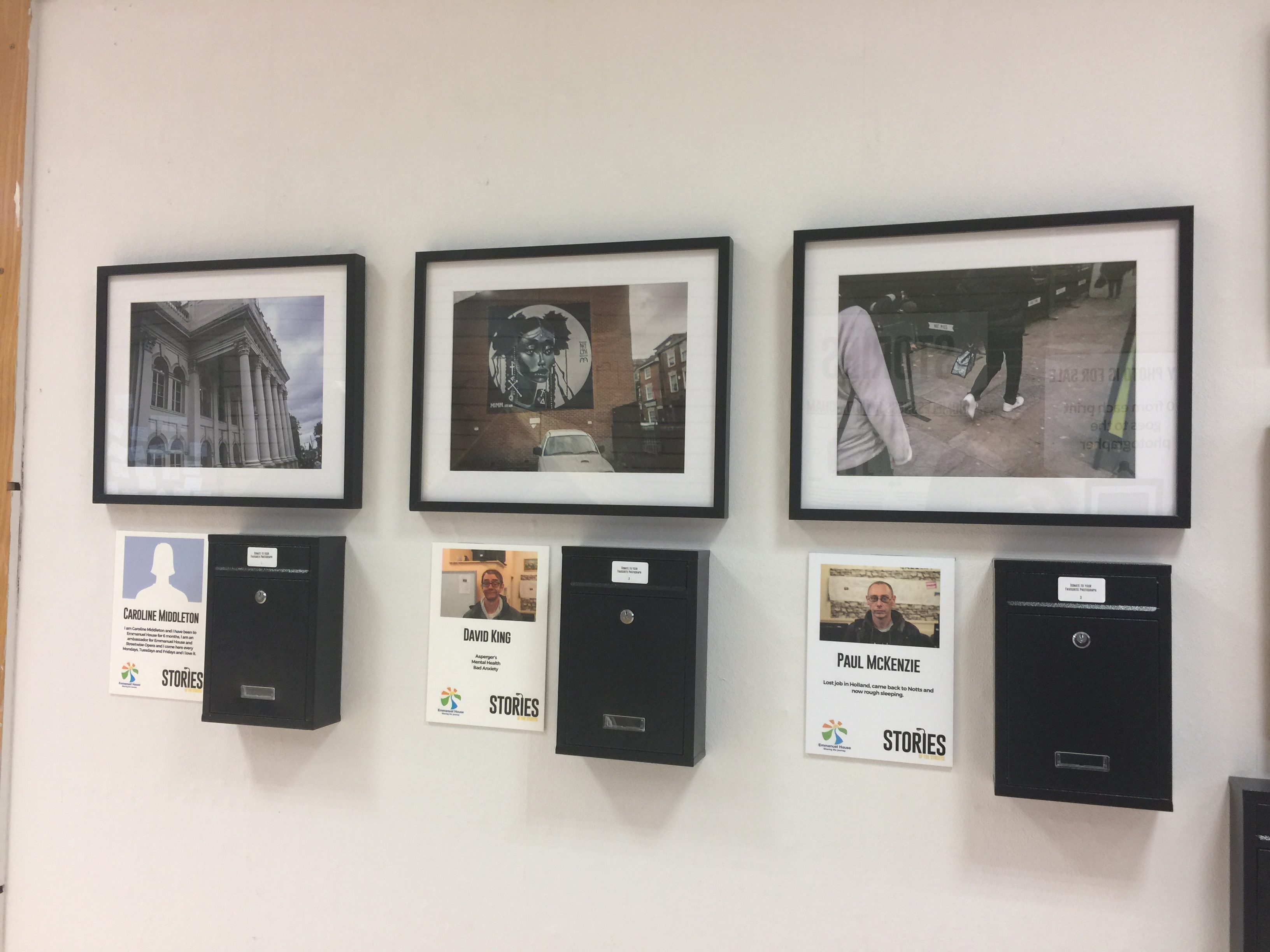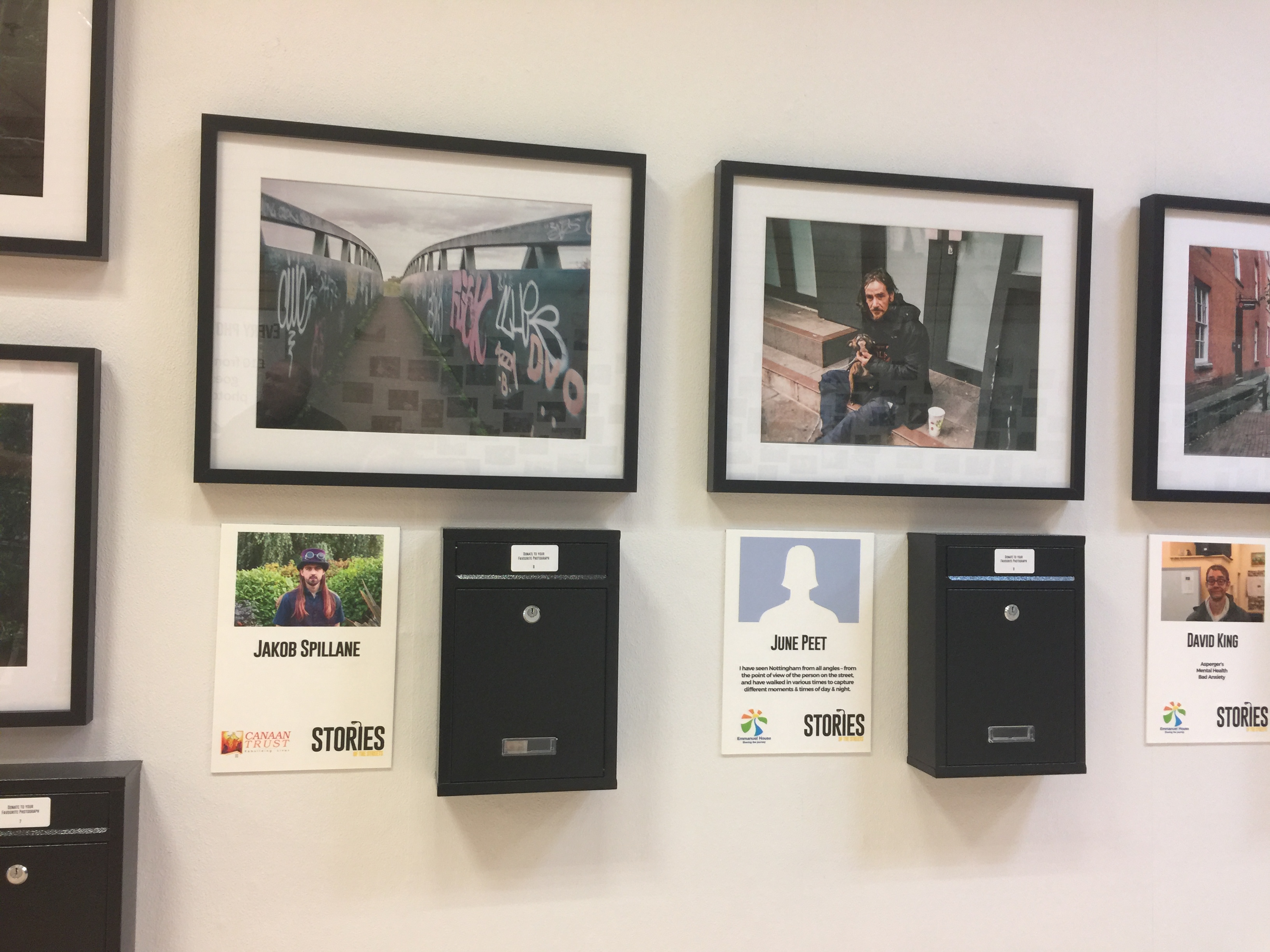 Twenty of the favourite prints were enlarged and framed on display at the exhibition, with a picture, name, and a few words of the photographer. Next to each picture is a post box for giving something to the photographer be it a donation or a message. These framed prints are available to purchase at £40 each, £10 of which goes back to the homeless photographer. The £10 is not given as cash but in the form of Pay it forward schemes, such as secure accommodation or meals, and re-invested back into our social enterprise to support more people and exhibitions across the UK.