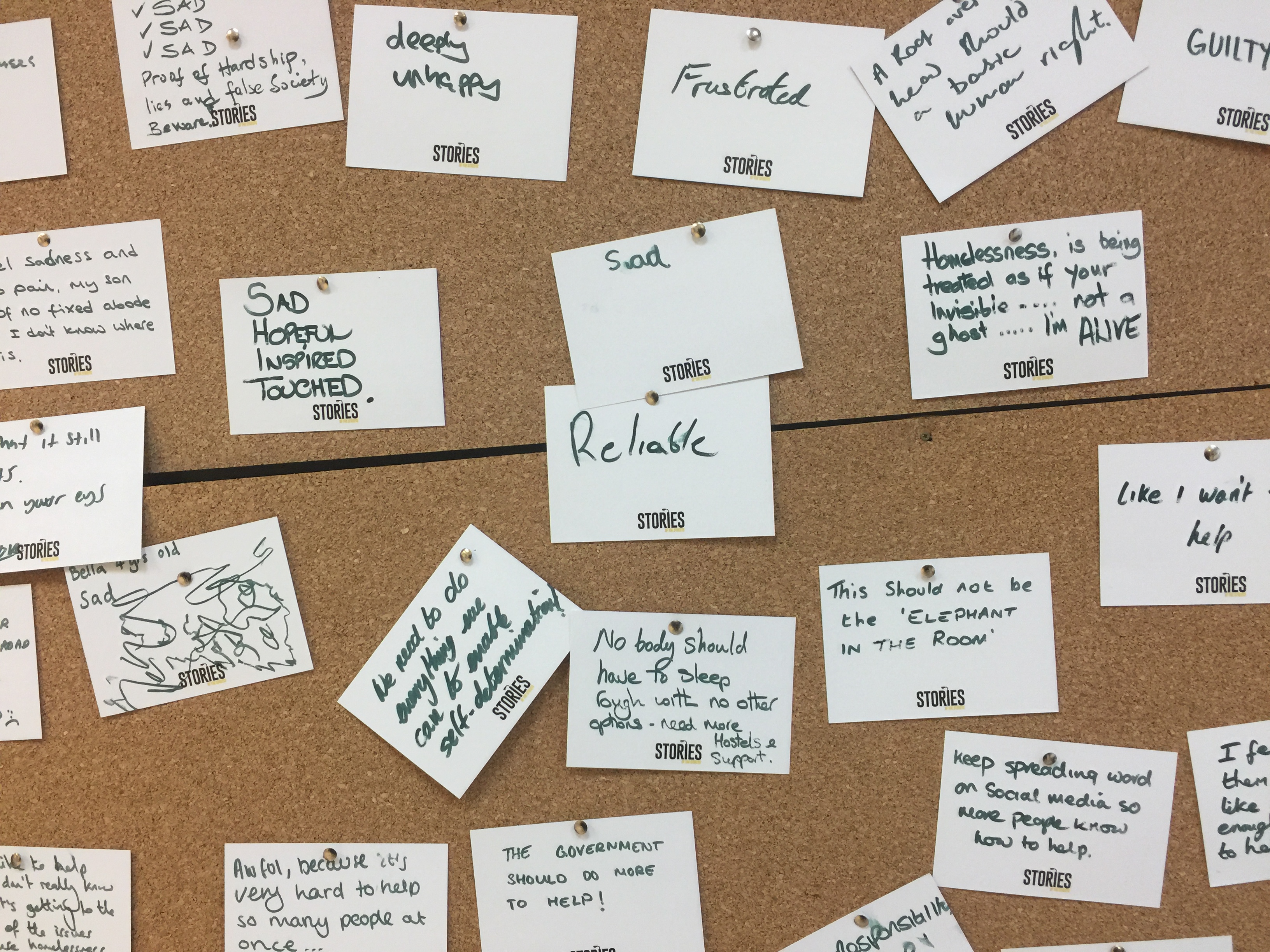 This project offered homeless people the opportunity to contribute to a photographic exhibition by illustrating their stories and experiences of managing life on the streets.